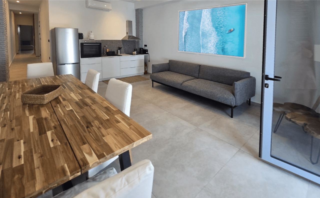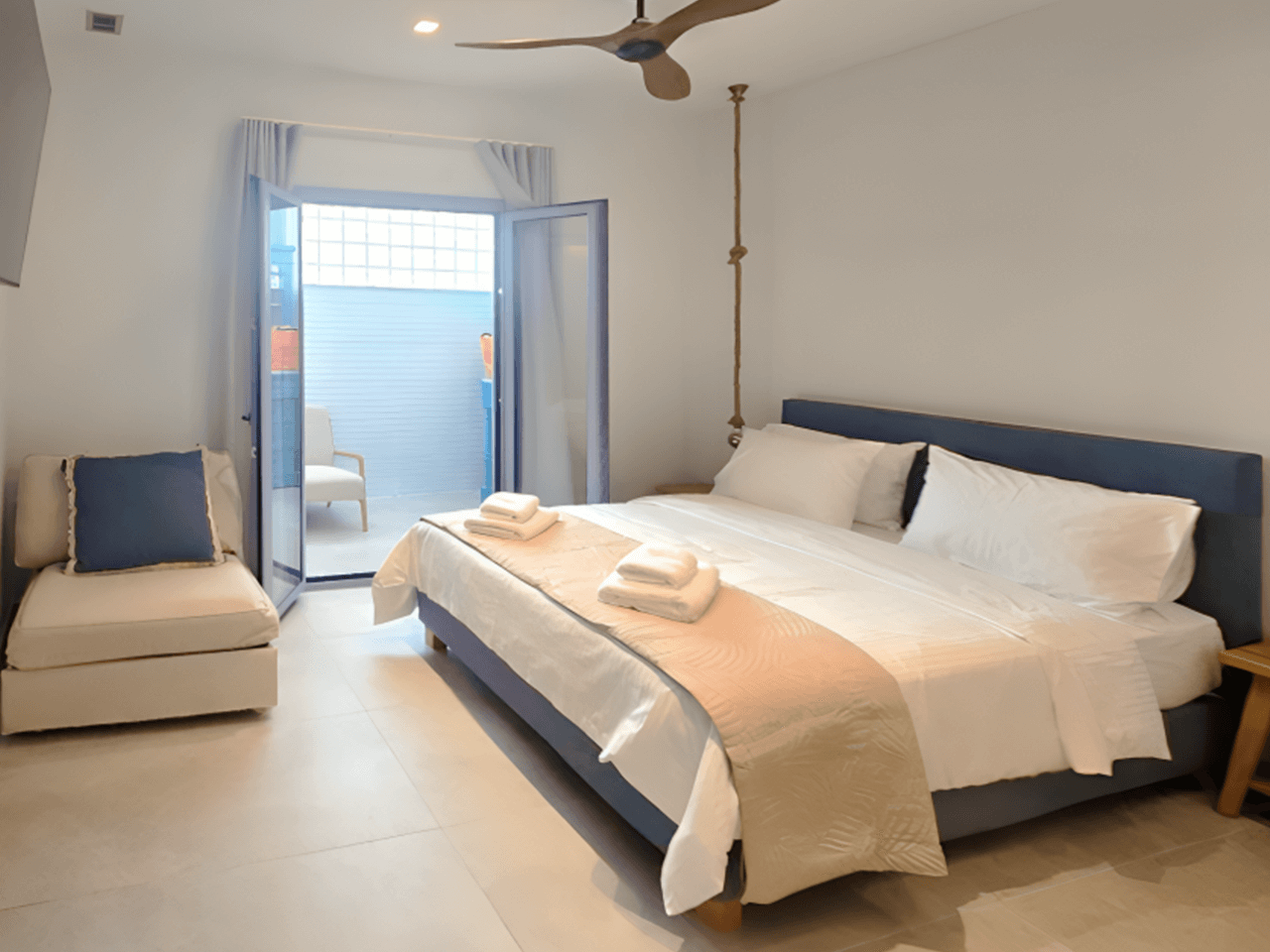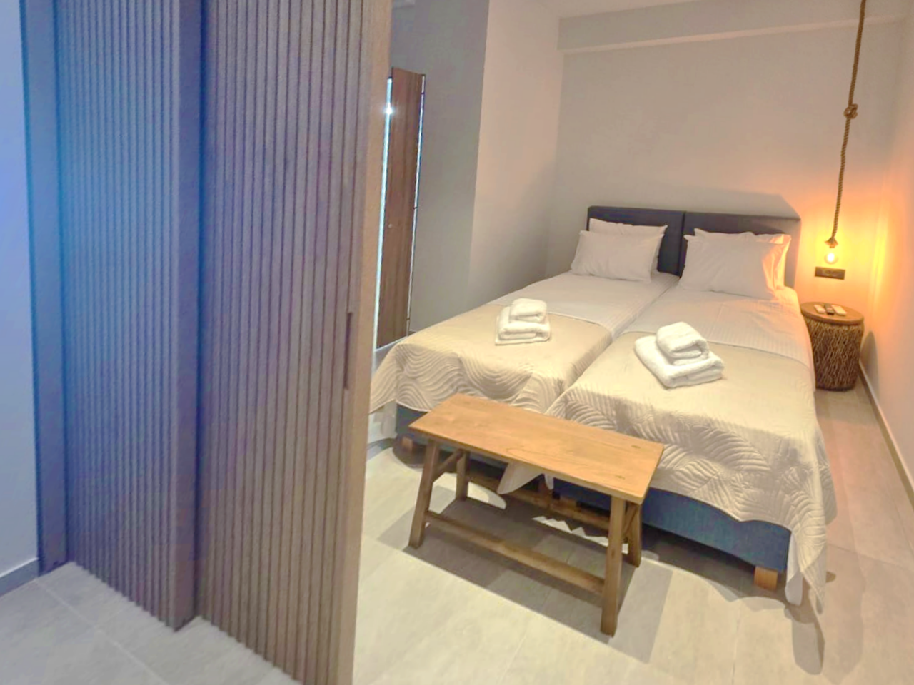 “Thalassa” (Θάλασσα) is fully air‑conditioned and includes flat‑screen televisions, free Wi‑Fi, fresh linens and towels on arrival, wardrobes, and essential amenities such as a hairdryer, iron, ironing board, and safety equipment. Outdoor furniture makes it easy to enjoy the sunrise or relax after a day by the sea. Restaurants, cafés, and small shops are all within a short walk.