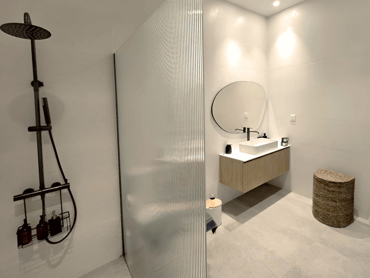 “Thalassa” (Θάλασσα) is an 80m² seaside suite located in the village of Ilia (Ηλία), Evia, offering clear views of the sunrise, the sea, and the surrounding hills. The suite is designed for guests who want a quiet, spacious stay close to the water and within easy reach of the town’s hot springs. With two separate bedrooms and an open‑plan living area, it comfortably accommodates families, couples travelling together, or small groups of up to five guests.